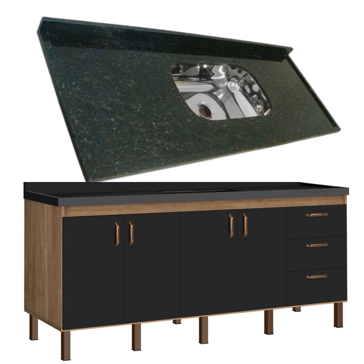 Unimos o útil ao agradável, nosso modelo Copacabana com a pia de granito Verde Ubatuba, além de resistência, entregamos elegância com esse conjunto lindo.