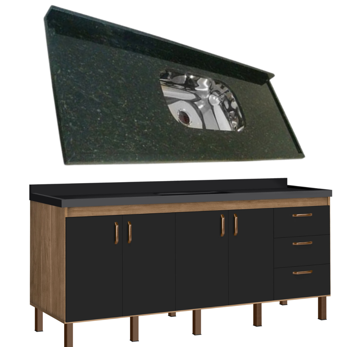Unimos o útil ao agradável, nosso modelo Copacabana com a pia de granito Verde Ubatuba Cuba Funda, além de resistência, entregamos elegância com esse conjunto lindo.