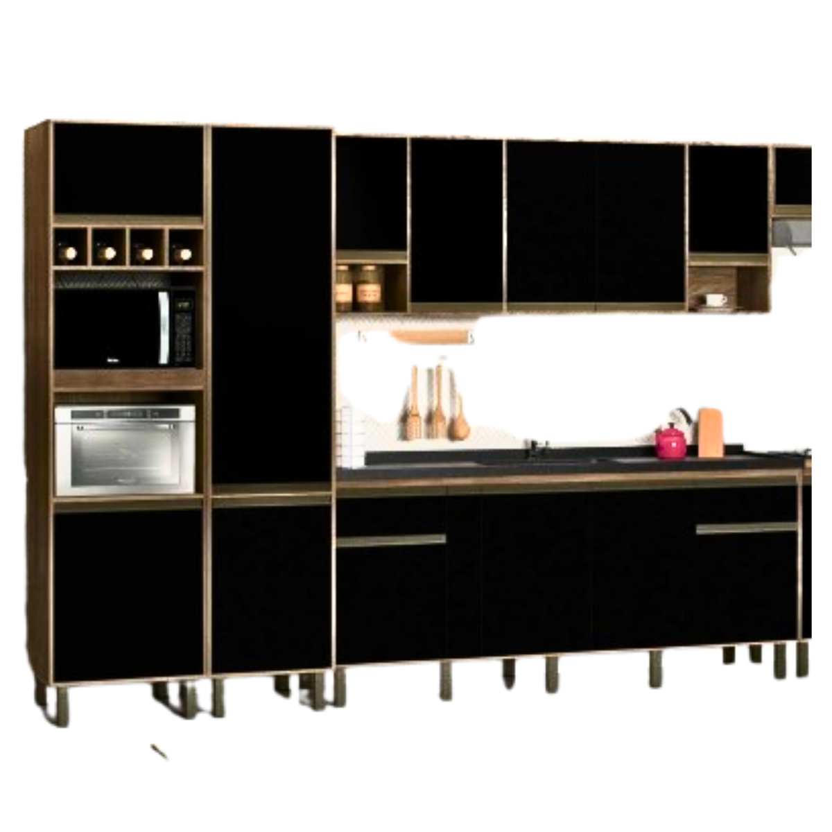 Cozinha de 4 peças, na cor preto avelato, peças pré montadas.